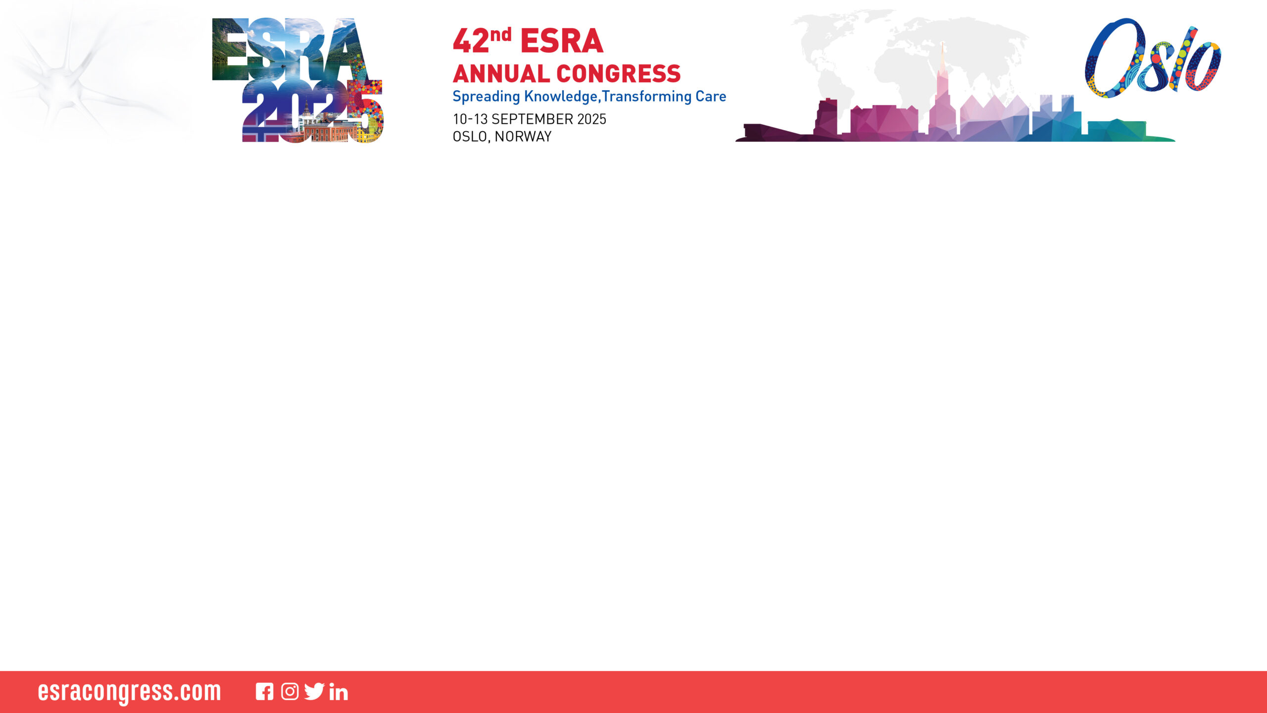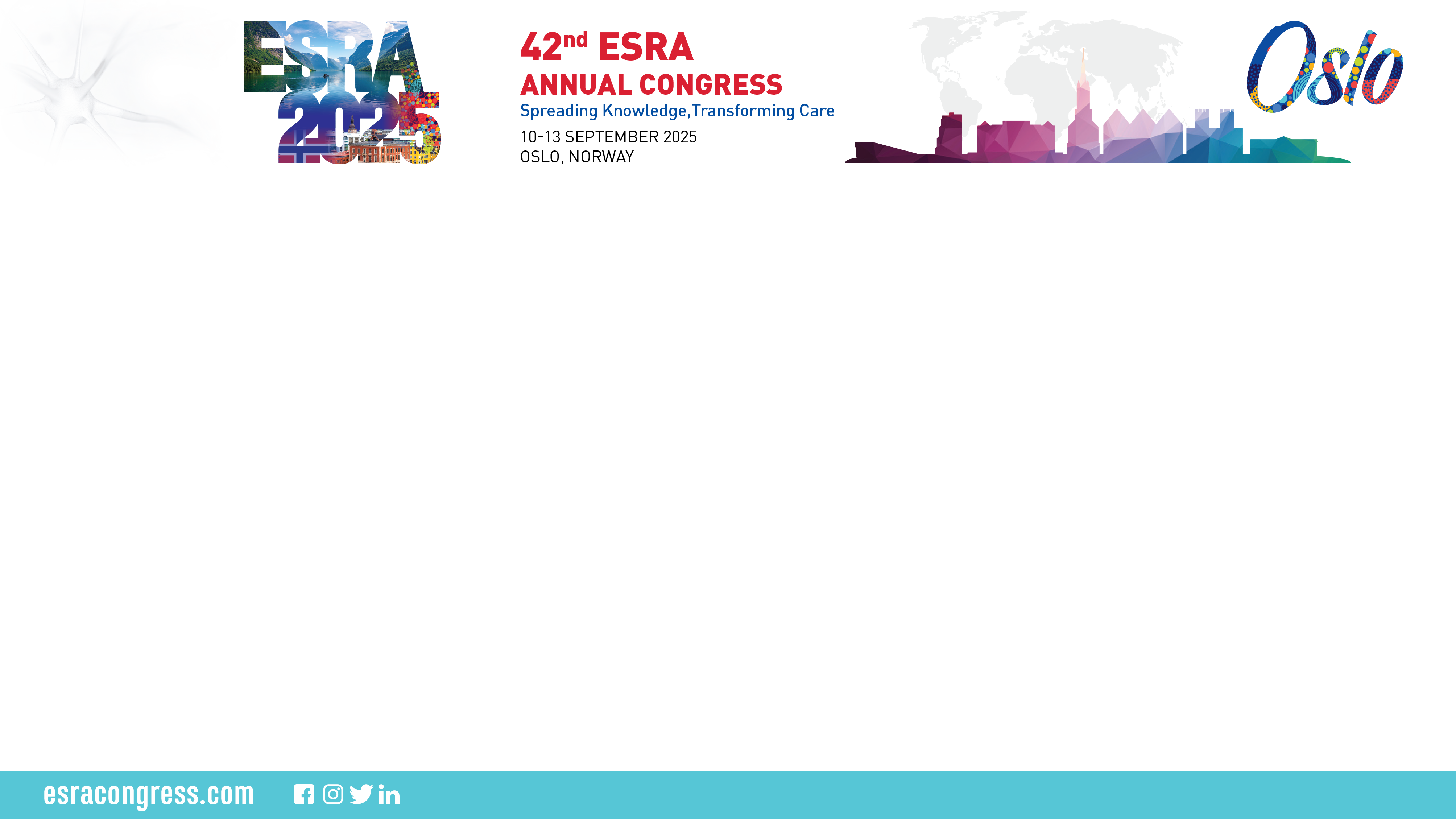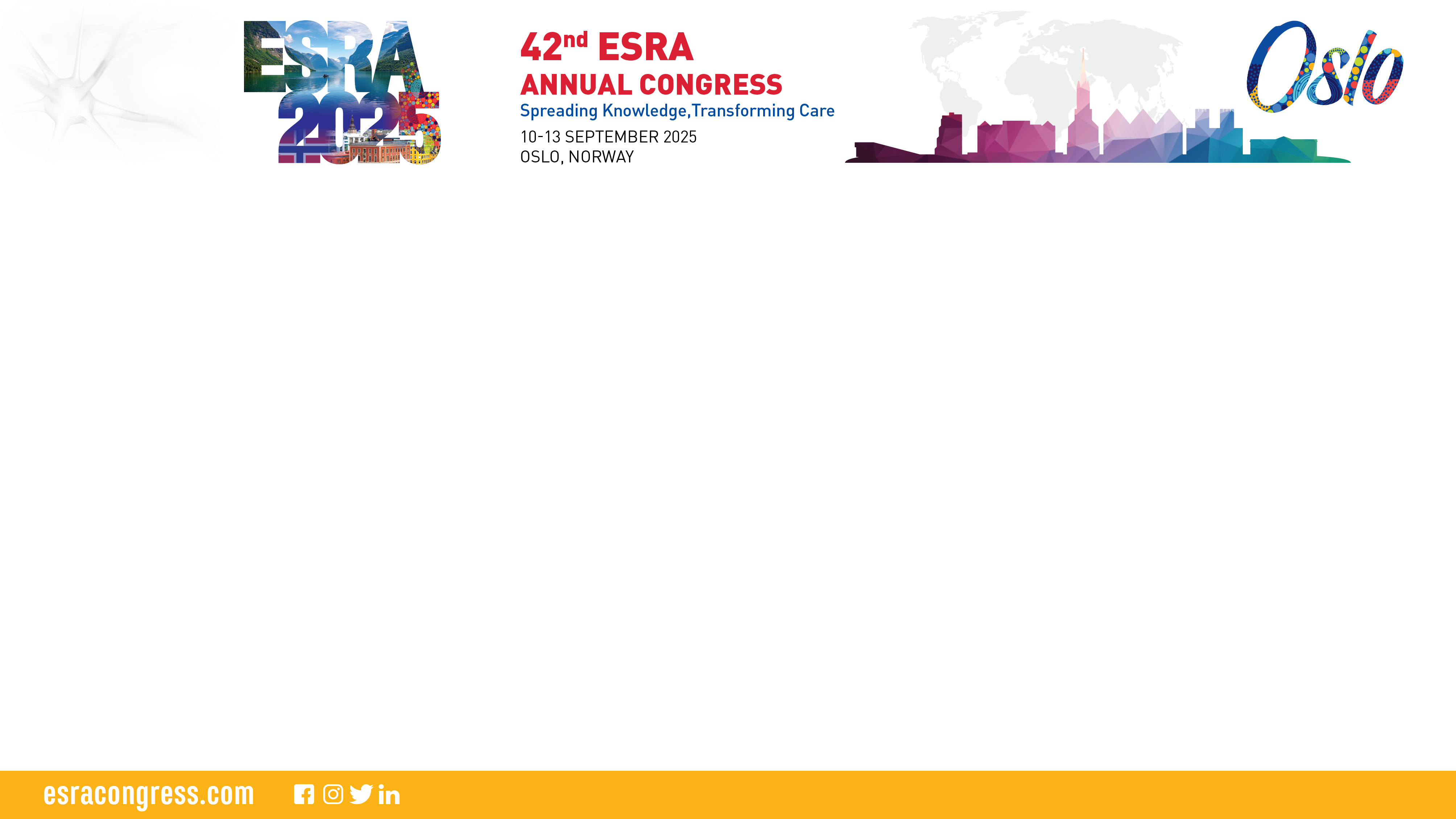 the upload of your slides will have to be done on site only (no sending before the congress). Prior to the start of the session you will need to go to the Preview Room (in the Exhibition Hall)